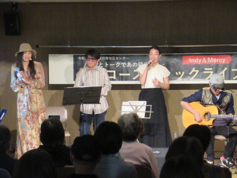 ステージイベントとして、アコースティックライブが終了しました。満員御礼です!60年代から80年代の懐かしい曲を歌とともにその曲の時代に起きた出来事などのトークも交え、皆さん楽しまれていた様子でした。私も一緒に楽しい時間を過ごさせていただきました。出演された皆さまご協力ありがとうございました。