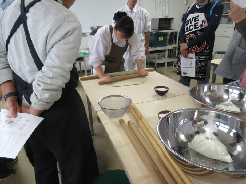 手打ちそばの講座が終了しました。こちらは午前の部の様子です。今回は午前の部の方が人気で、あっという間に定員に達しました。ご自身で打ったおそばを美味しく召し上がっていました。